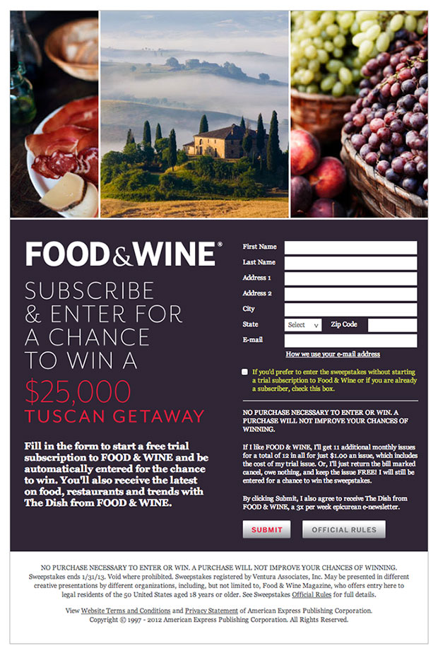 Scope: Spider's Web has helped Food & Wine develop landing pages and a range of supporting email and promotional campaigns.