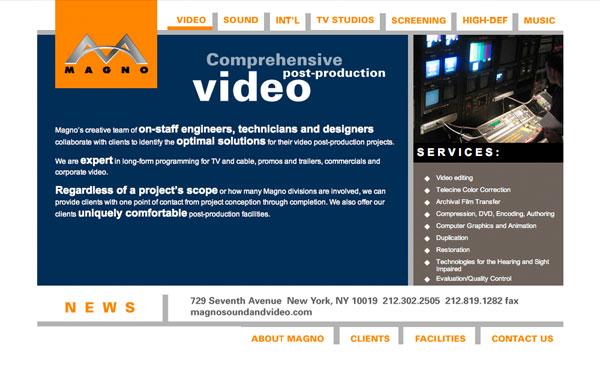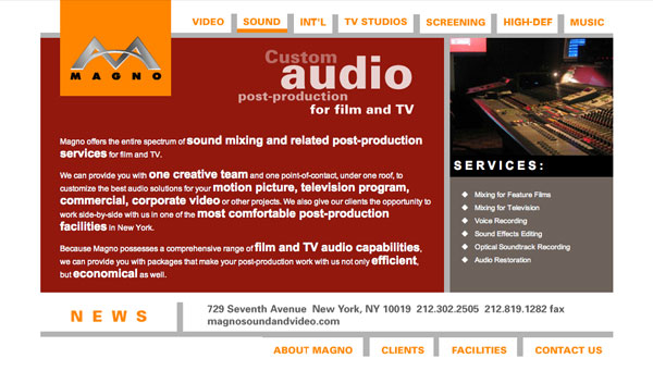 Magno is an industry powerhouse that ranks as the East Coast's largest and most comprehensive post-production facility. For more than 50 years, Magno provides an ever-growing range of diverse services for film and TV from their Times Square headquarters.