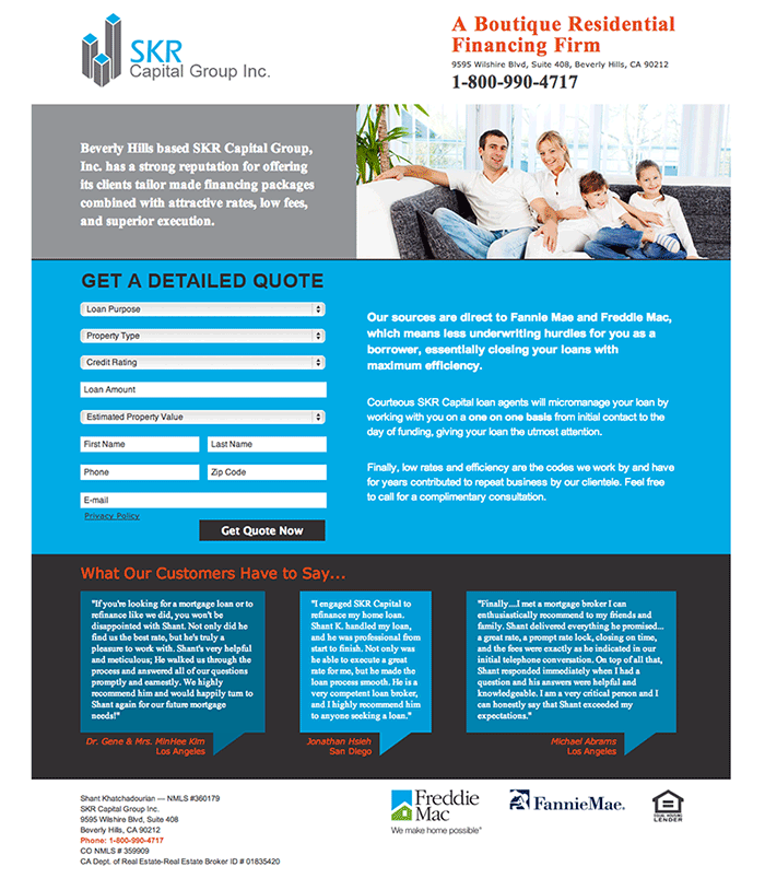 Beverly Hills based SKR Capital Group is a boutique residential and commercial real estate financing firm.