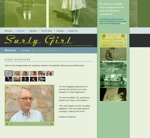 Spider's Web developed performer Nancy Hurlbut's interactive showpiece for her play. This includes development of the video clip showcase and administrative tools to run the site's backend system.