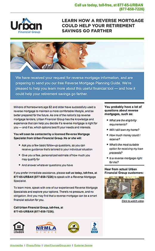 Urban Financial Group is a lender specializing in reverse mortgages and ranks among the top three originators in the United States.